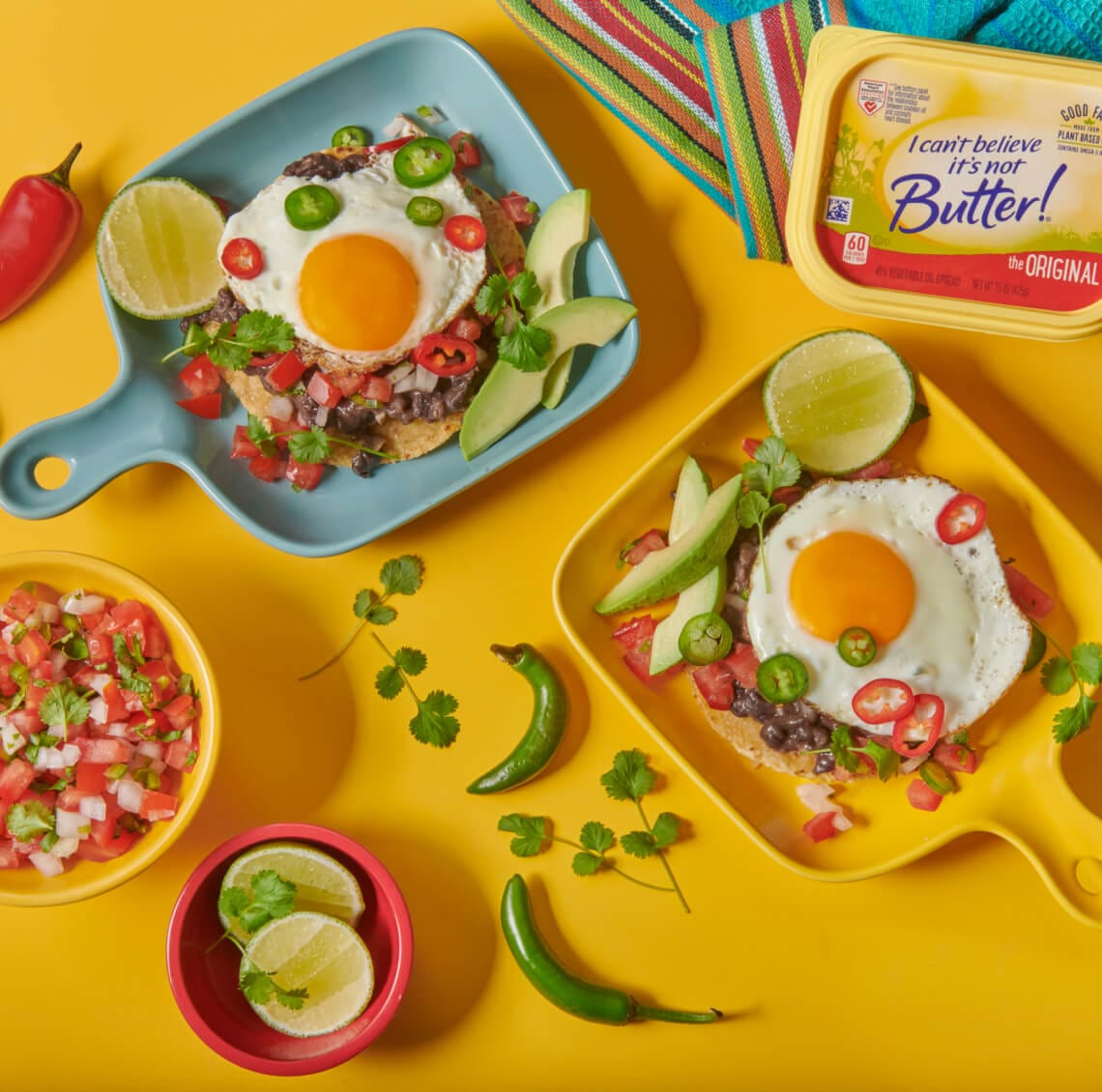 Brunch is more than a midday meal, it’s the perfect excuse to invite your family to catch up, kick back, and eat delicious homemade food. Since brunch typically takes place during the time of day when you’re still in pajamas (possibly enjoying your second cup of coffee), simple dishes that you can prepare ahead of time are crucial. Huevos rancheros — or “ranch-style” eggs, a traditional breakfast on Mexican farms — are a bonafide crowd-pleaser, and this recipe, which features I Can’t Believe It’s Not Butter! Original Spread (certified as a heart-healthy food by the American Heart Association), is the perfect brunch table centerpiece to share with the people who make your heart the happiest.